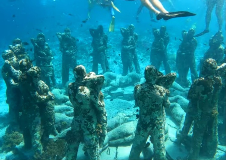 A unique underwater art installation by British sculptor Jason deCaires Taylor. The sculpture attracts coral growth and marine life, creating a natural reef ecosystem.